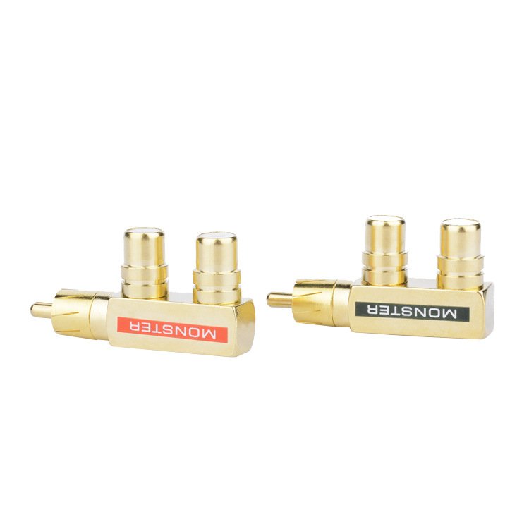 High-quality Copper 24K Gold Plated 1 male to 2 Female RCA Plug Jack Right Angle Splitter Plug Connector AV Adapter